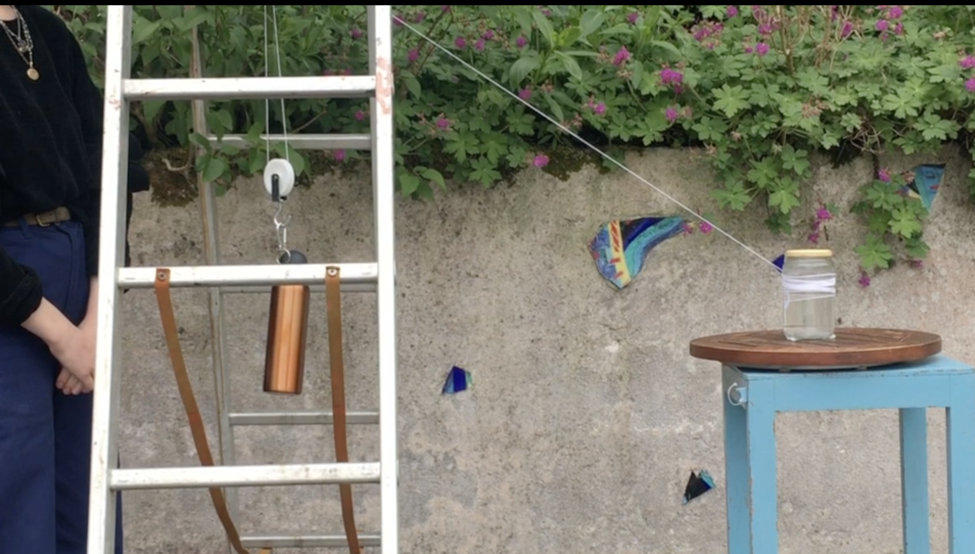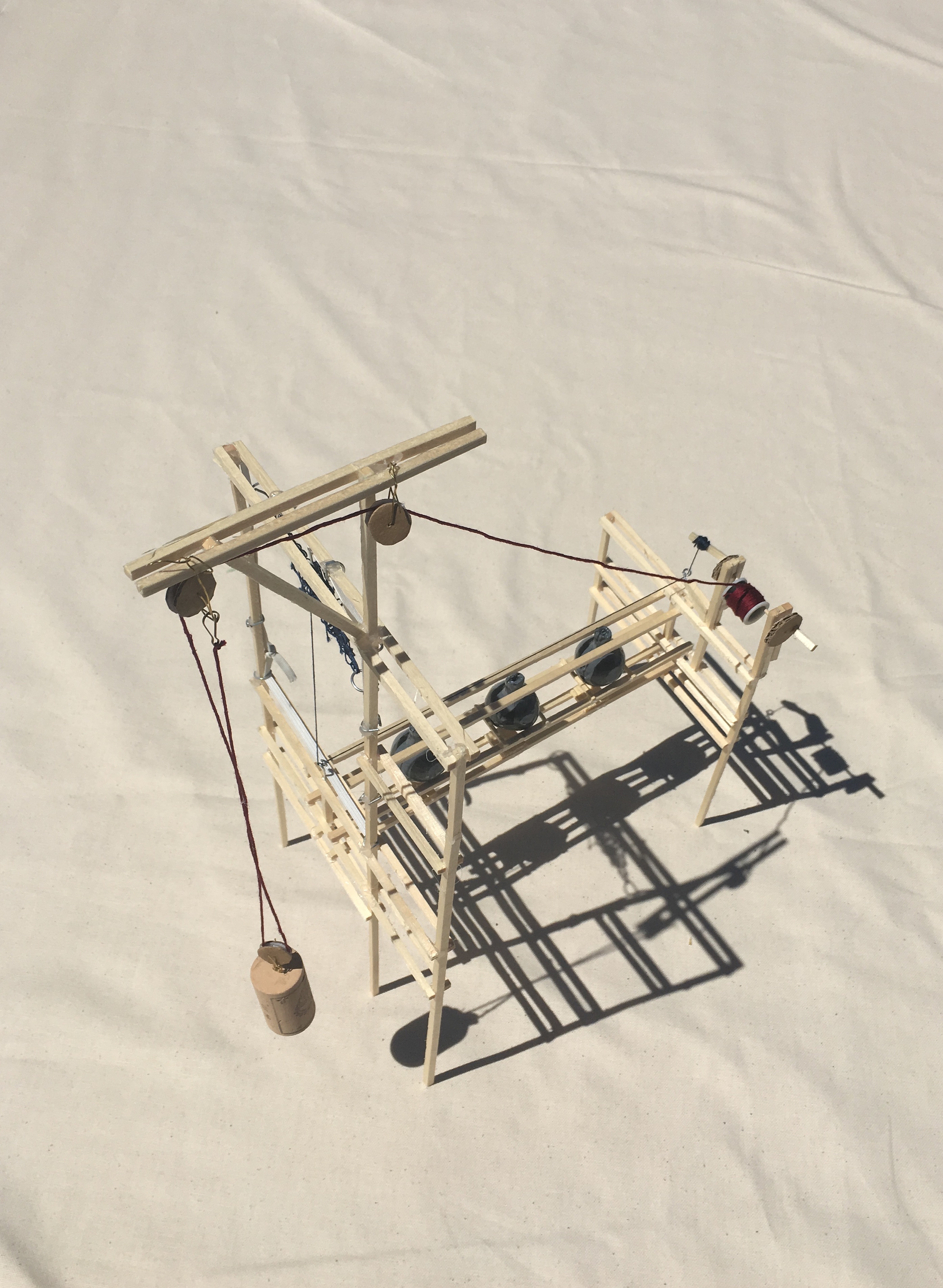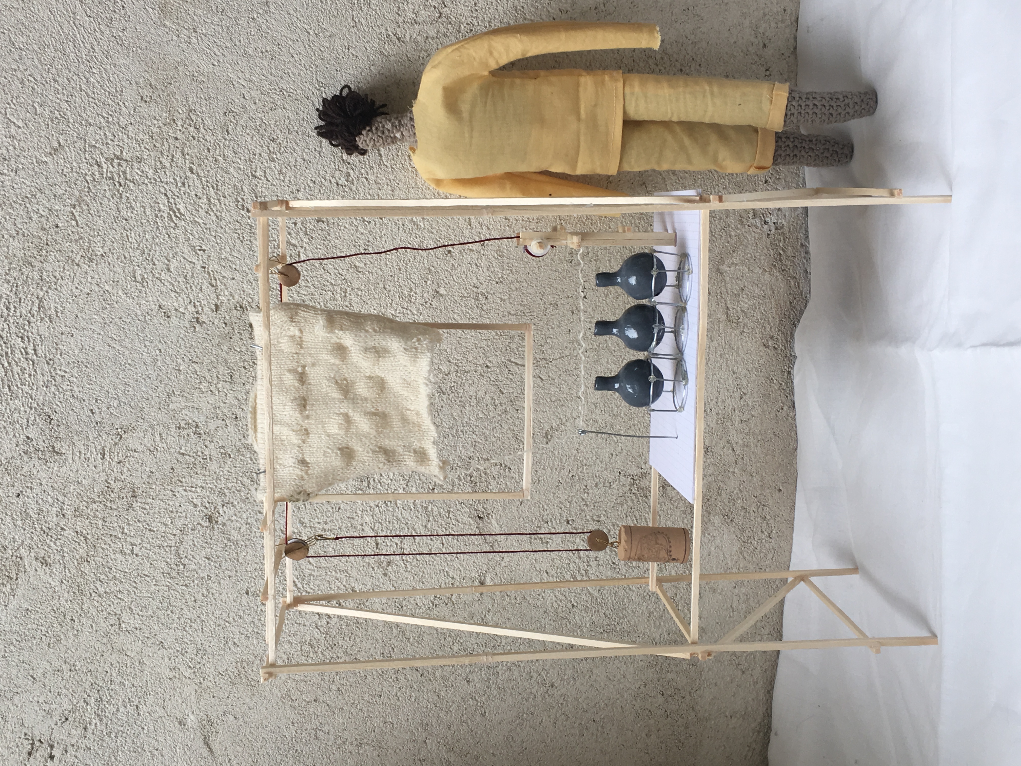 Bois, fioles, bougies, poulies